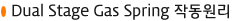 Dual Stage Gas Spring(Àϸí Inter Stop Gas Spring)ÀÇ ÁÖ¿äÆ¯Â¡Àº ƯÁ¤ºÎºÐ¿¡¼ Stroke¸¦ ºÐÇÒÇÒ ¼ö ÀÖ´Ù. ù ¹øÂ° ºÎºÐ¿¡¼´Â ÀÏ¹Ý Gas Spring°ú µ¿ÀϽà °³ÆóµÇ¸ç, ƯÁ¤µÈ Holding Point¿¡¼ ¸ØÃ߸ç, µÎ¹øÂ° Stoke ºÎºÐ¿¡¼´Â ¼öµ¿ ¸ØÃã¿¡ ÀÇÇØ ¾î¶°ÇÑ ¿¸² ÁöÁ¡¿¡¼ Á¤ÁöÇÏ°Ô µÈ´Ù.